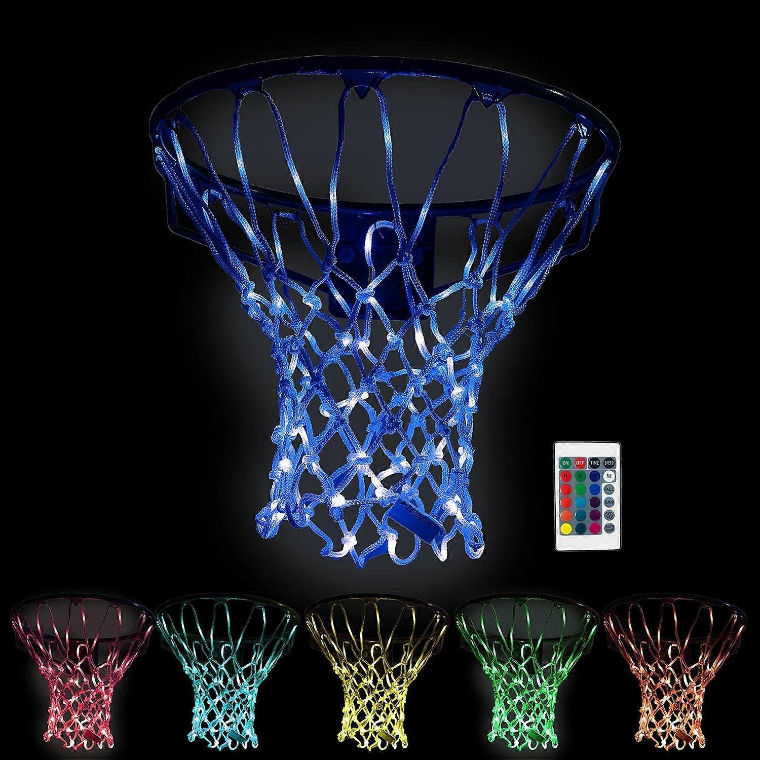 NEW LED GLOW IN THE DARK LIGHT UP BASKETBALL HOOP: Shooting hoops is one of the most fun activities in the world. Whether youre practicing to get better at basketball or just getting a little exercise. Play basketball into the night Light Up Net! EASY SET UP - Loops easily fit on any basketball hoop and attach in seconds! The power supply has a velcro strip on the back for easy attachment to the back of the backboard.Custom Color Modes - LED lights can be adjusted and customized into almost any shade with multiple phase / blink options! Personalize your net and stand out from the pack! Lights are super powerful so youll be able to see the net from any range while practicing your jump shot.HEAVY DUTY DURABILITY - Proprietary LED weave design allows us to actually ingrain the LED strips into the netting itself! This gives the net extreme durability and strength.