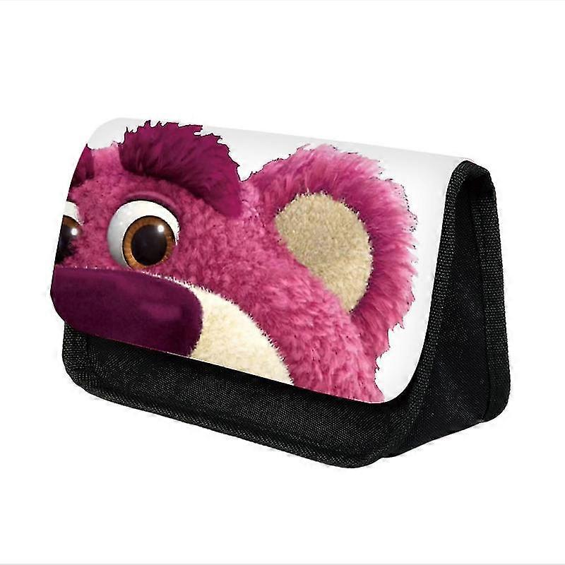 Cartoon Lotso Pencil Case Anime Double Zipper Large Capacity Pencil Case Stationery Bag Student Storage Bag Gift For Kid