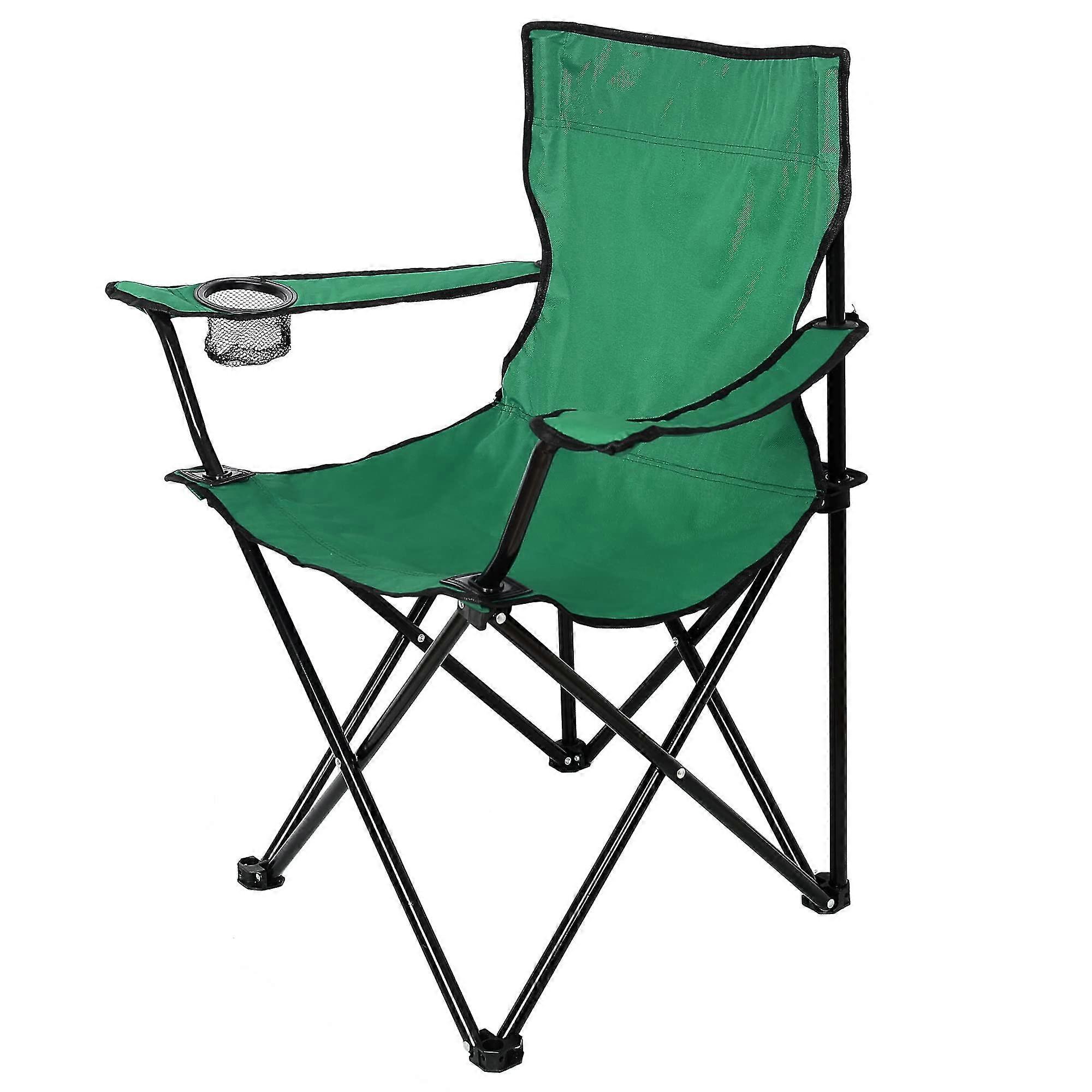 Folding Camping Chair, Foldable Garden Seat, Load Up To 100 Kg, Seat Height 40 Cm, With Drink Holder & Bag, Lightweight, 80 X 50 X 47 Cm, Green