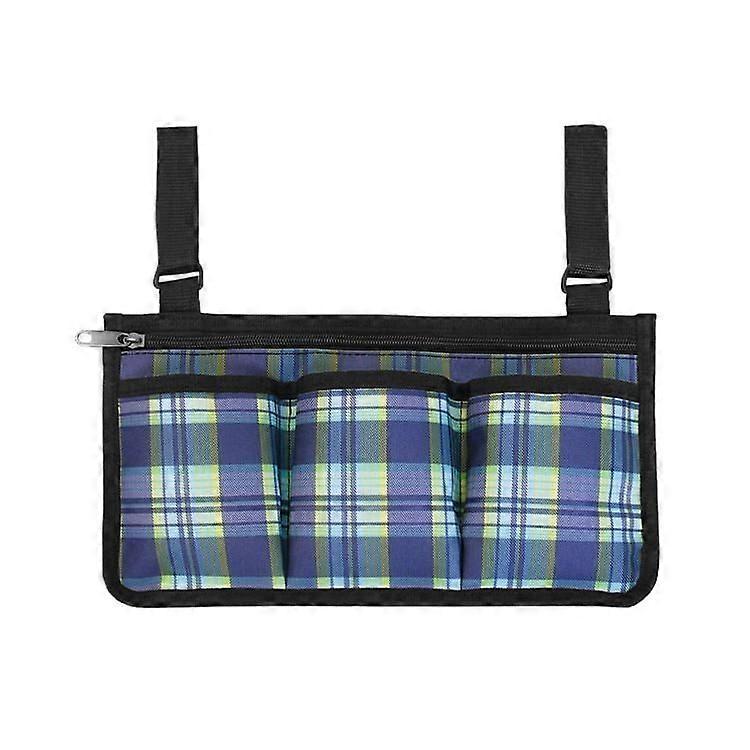 Wheelchair Armrest Side Storage Bag Storage Storage Bag Blue Grid