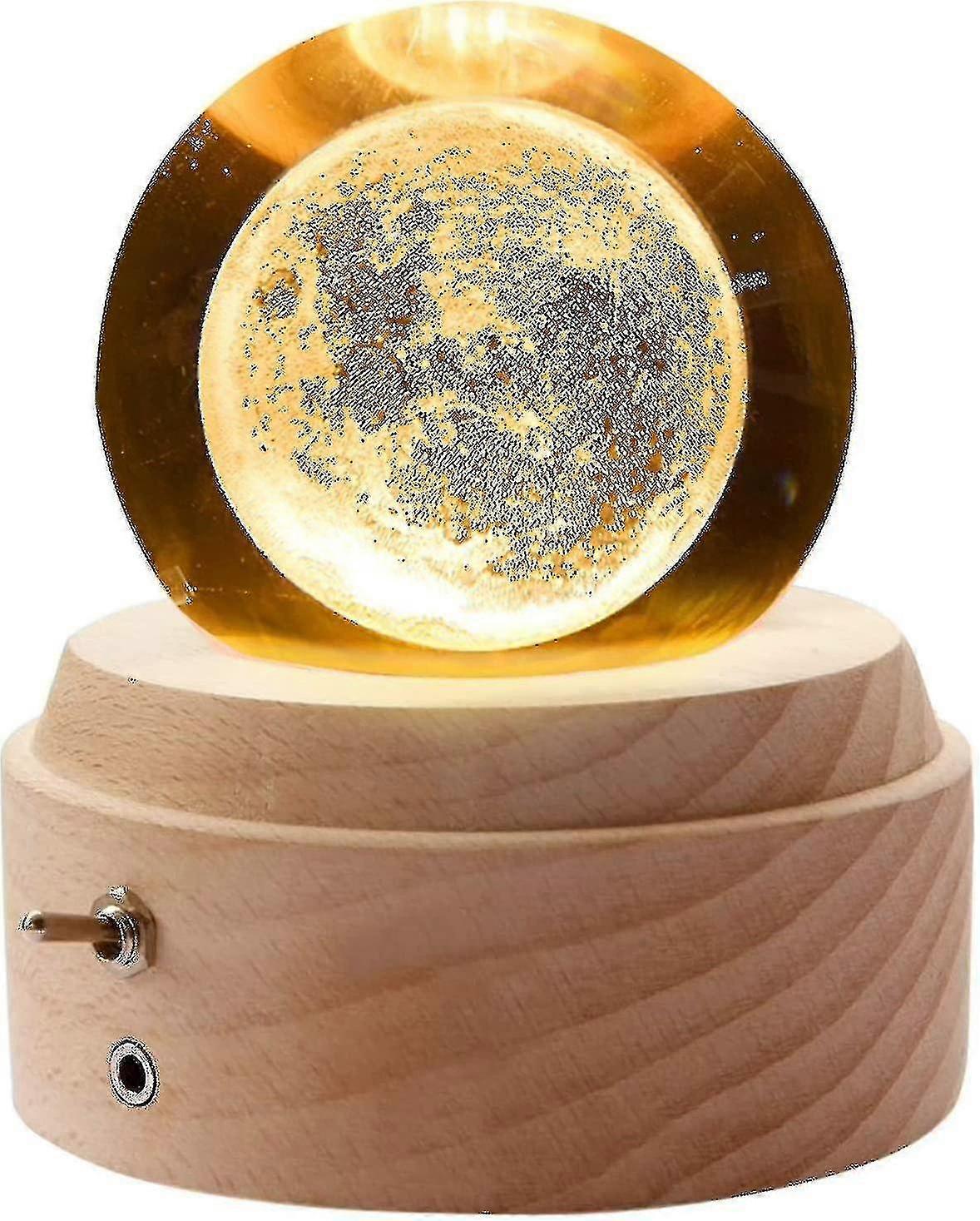 Crystal Ball Music Box, 360 Rotating, Wooden Base, Glow At Night With Projectionirthday Party Valent