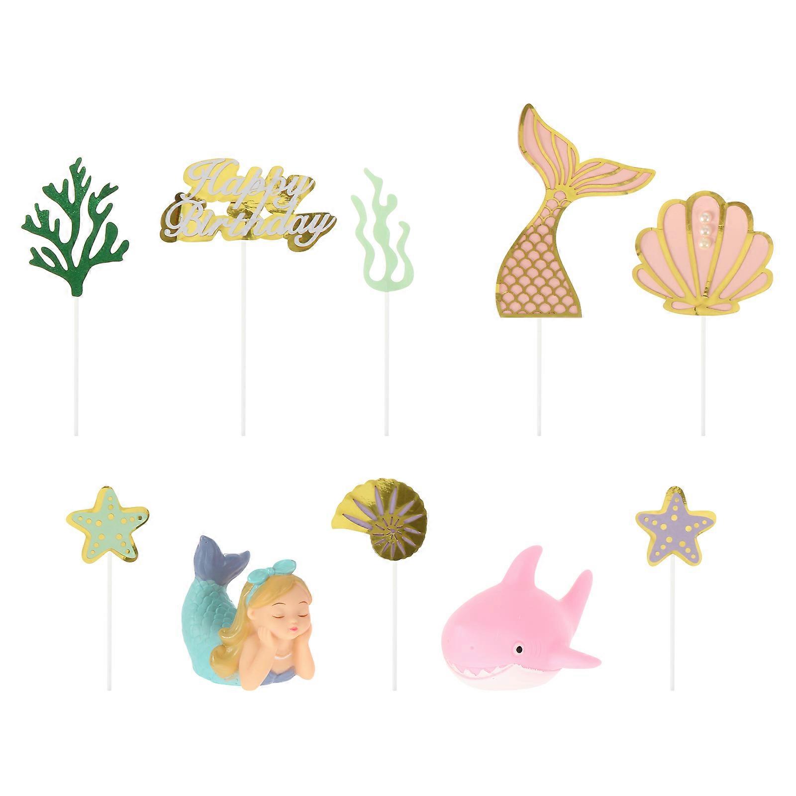 Cake Toppers Mermaid Shape Under the Sea Themed Party Decorations Pink Shark Theme 10Pcs