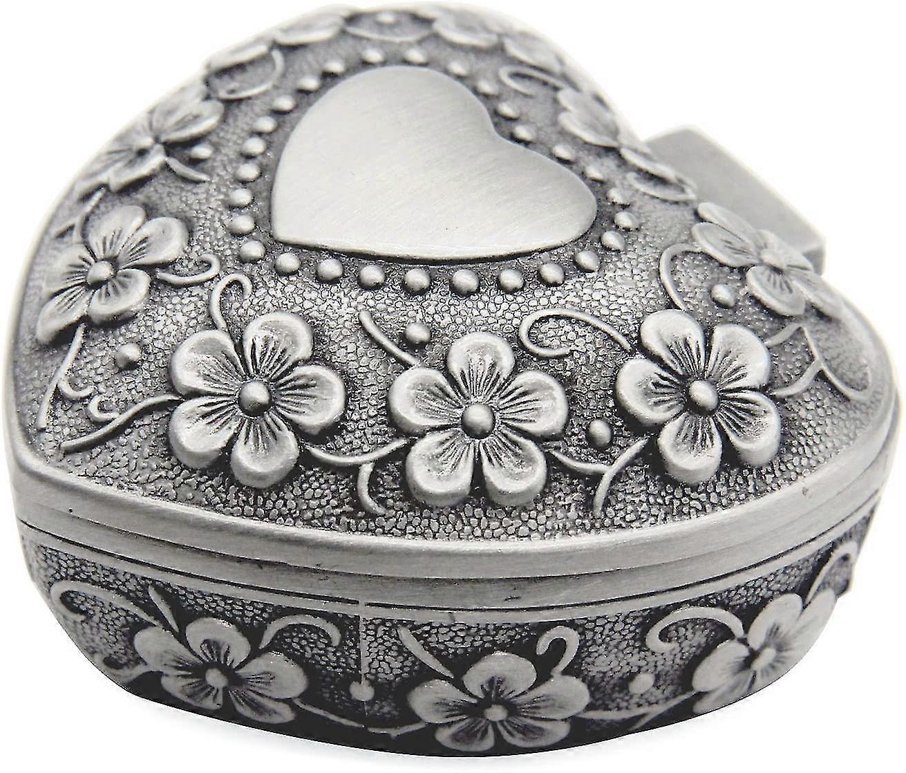 classic vintage antique heart shape jewelry box ring small trinket jewellery storage organiser chest, silver