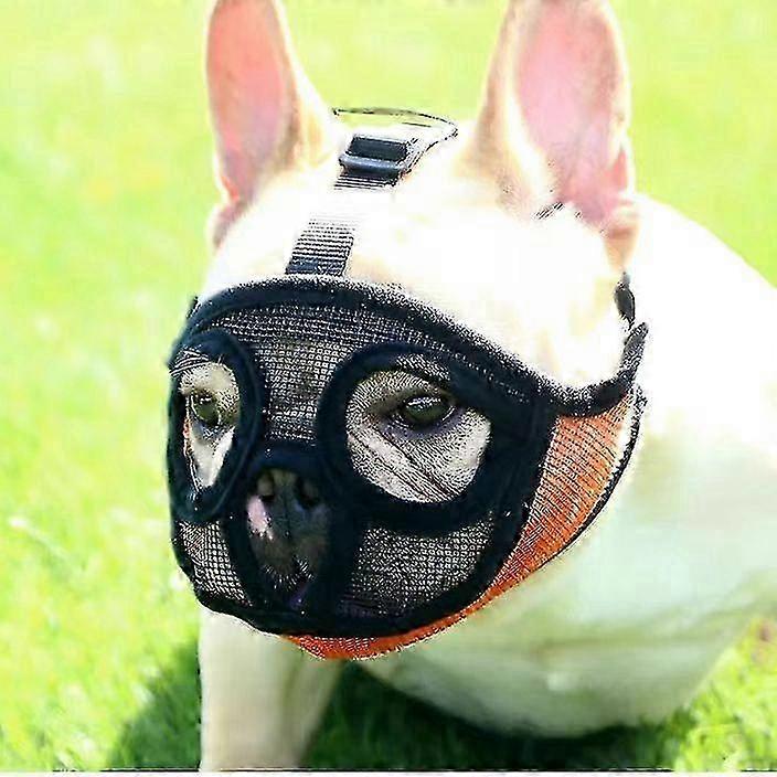 Dog Muzzle With Short Snout Adjustable Breathable Mesh Muzzle For English French Bulldogs Anti-bite