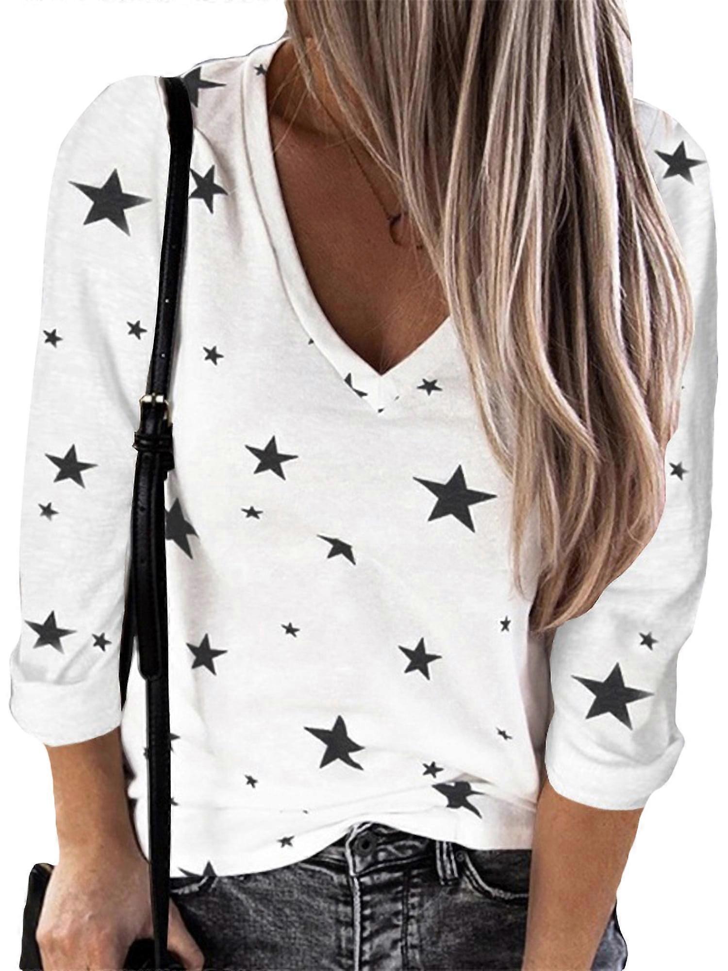 Long Sleeve T Shirts Blouse Tops For Ladies Casual Loose V Neck T-shirt For Women Tunic Shirts