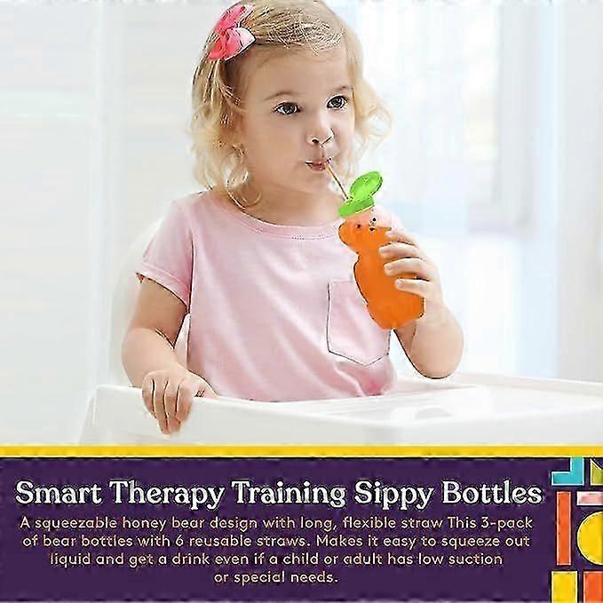 Honey Bear Straw Cup Long Straws, 3-pack Squeezable Therapy And Special Needs Assistive Drink Container, Spill Proof And Leak Resistant Lid-ZZY -HK25