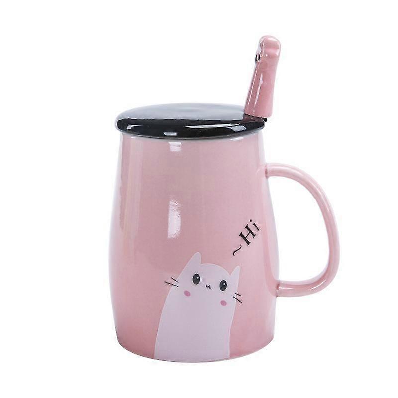 Pink Cute Cat Mug, Funny Ceramic Coffee Mug with Stainless Steel Spoon, Novelty Coffee Mug for Cat L