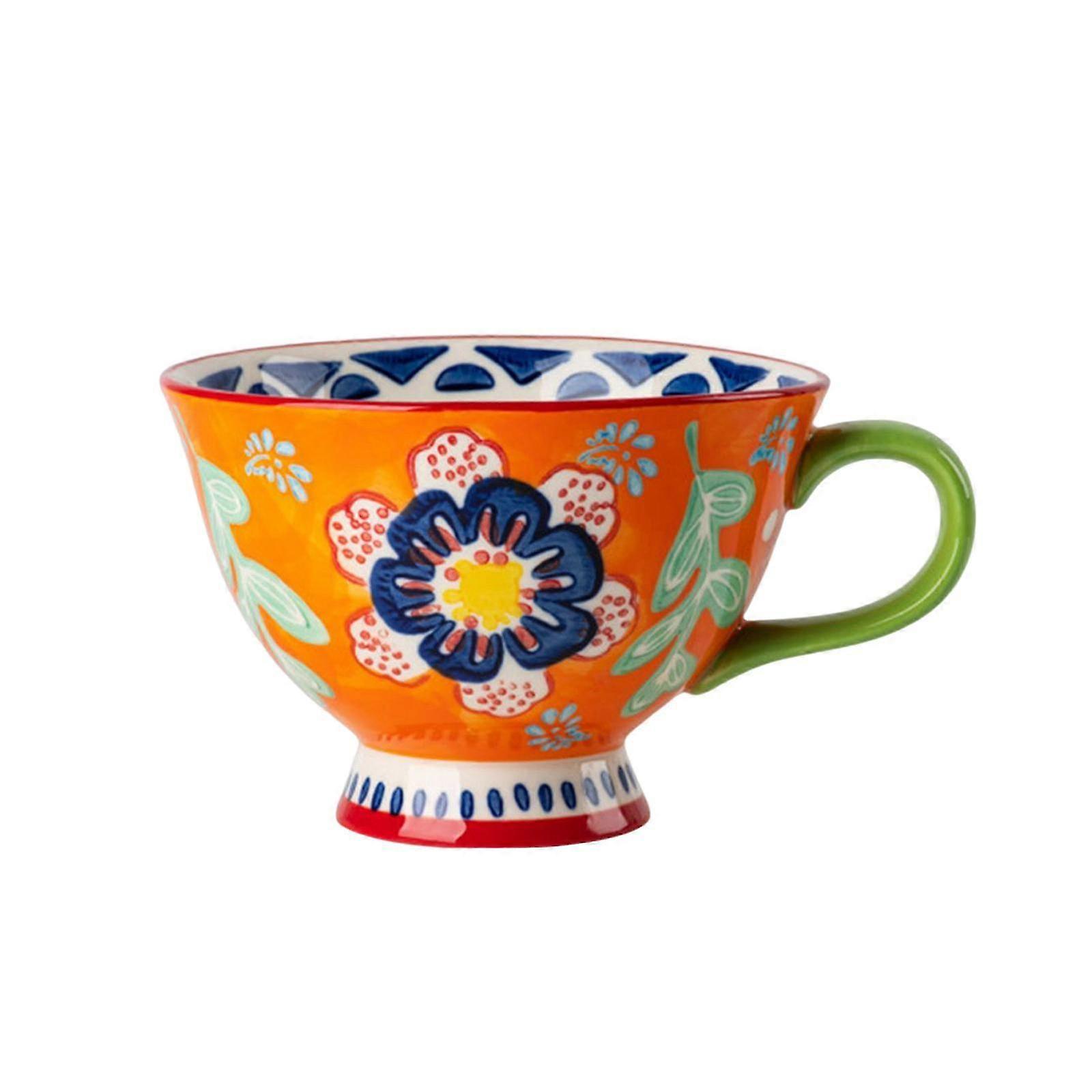 Vintage Floral Ceramic Coffee Mug, Hand-Painted Design for Cafe, Home & Restaurant Use