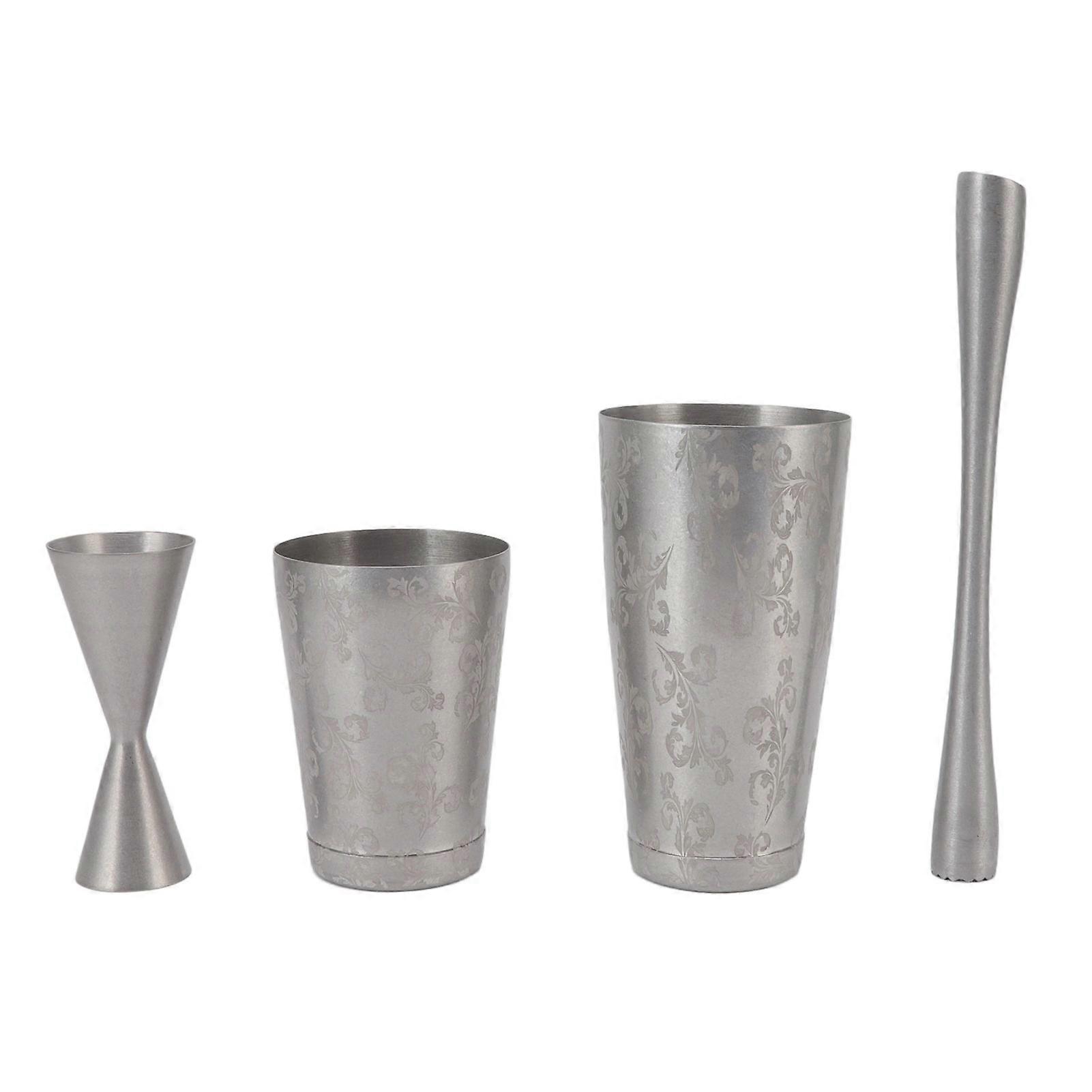 Cocktail Shaker Bar Set Stainless Steel Carved Leaves Pattern Wine Mixer Measuring Jigger and Muddler for Kitchen