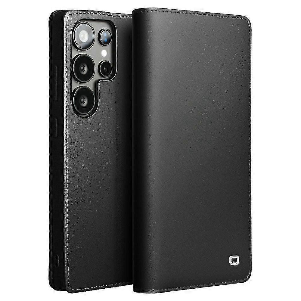 QIALINO For Samsung Galaxy S25 Ultra Case Wallet Flip Stand Phone Cover Genuine Cow Leather - Dark B