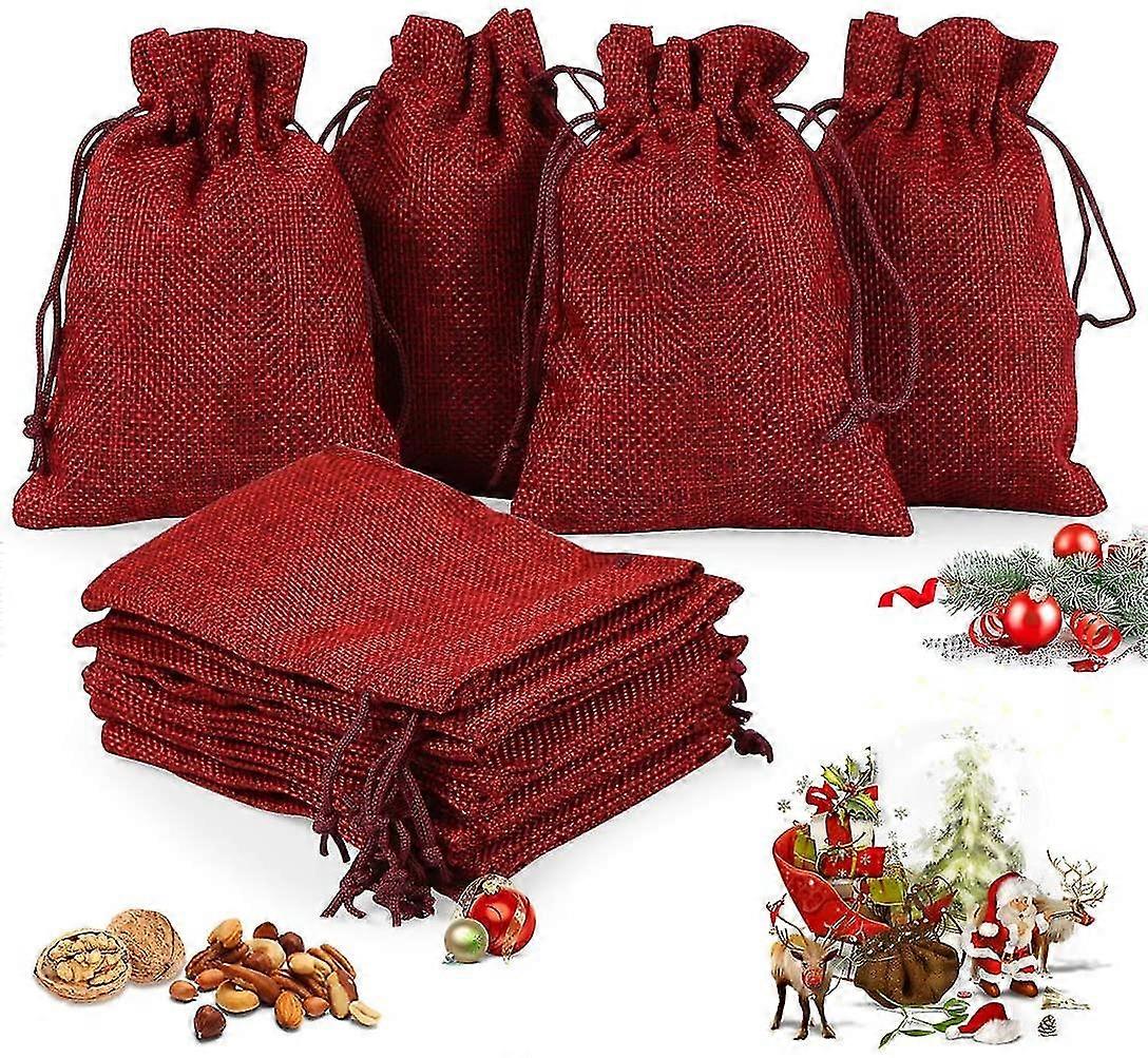 Christmas Burlap Sack, 24 Pcs Diy Jute Sack Bags For Filling Advent Calendar, Natural Pouches, Advent Calendar Drawstring Bags, 13cm X 18cm (red)