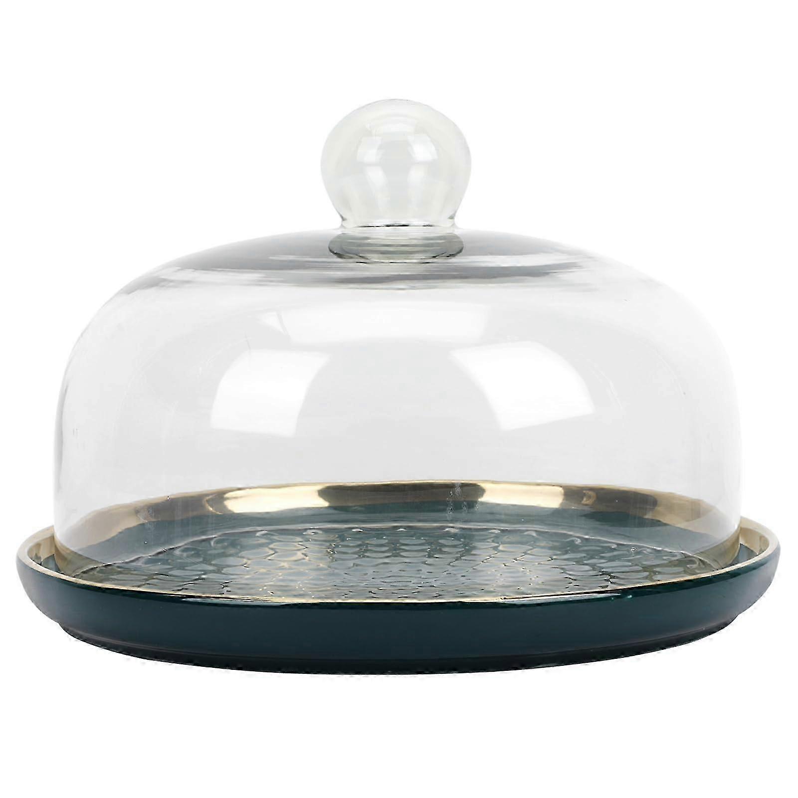 Cake Stand Ceramic Plate with Glass Dome Cover 10 Inches