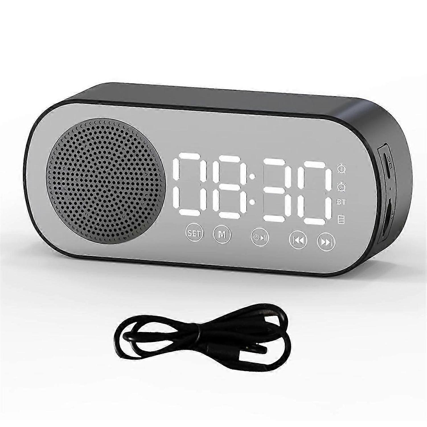 Wireless Bluetooth Speaker Clock Radio Dual Alarm for Home Black