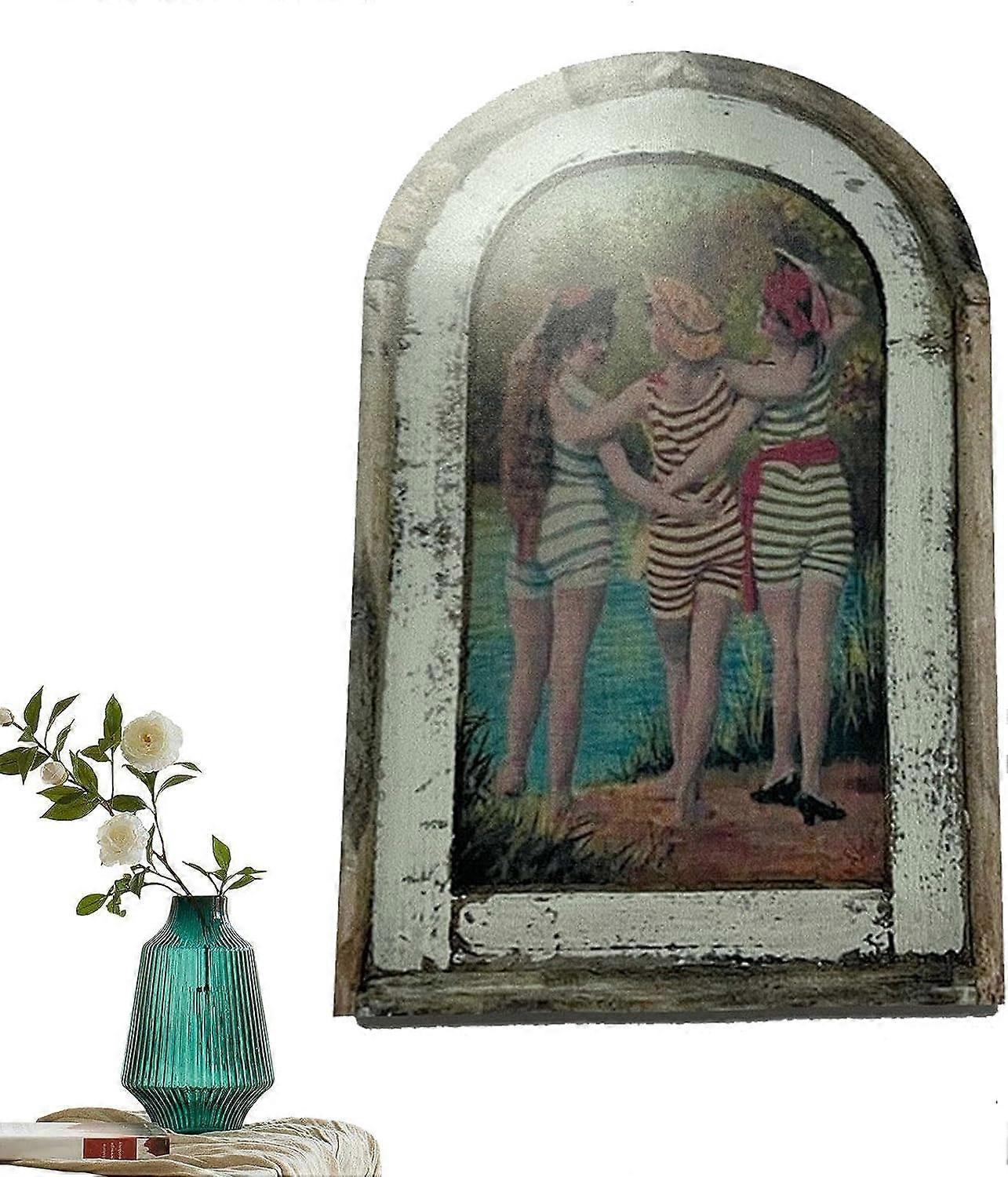 Rustic Bathroom Signs | Wooden Framed Painting | Wall Sculpture Decor, Modern Art Work, Living Room Bedroom Hanging Ornaments