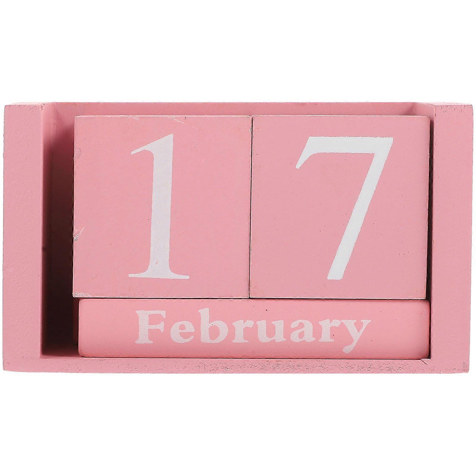 Never Ending Wooden Date Calendar Creative Desk Decoration Wood Blocks for Home and Office (Pink)