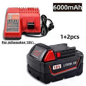 For Milwaukee M18 Power Tool Battery, Charger, 18V 6000mAh, BR, XC, 18V, M18B5, 48-11-1860, Built-in 18650 Battery-fj