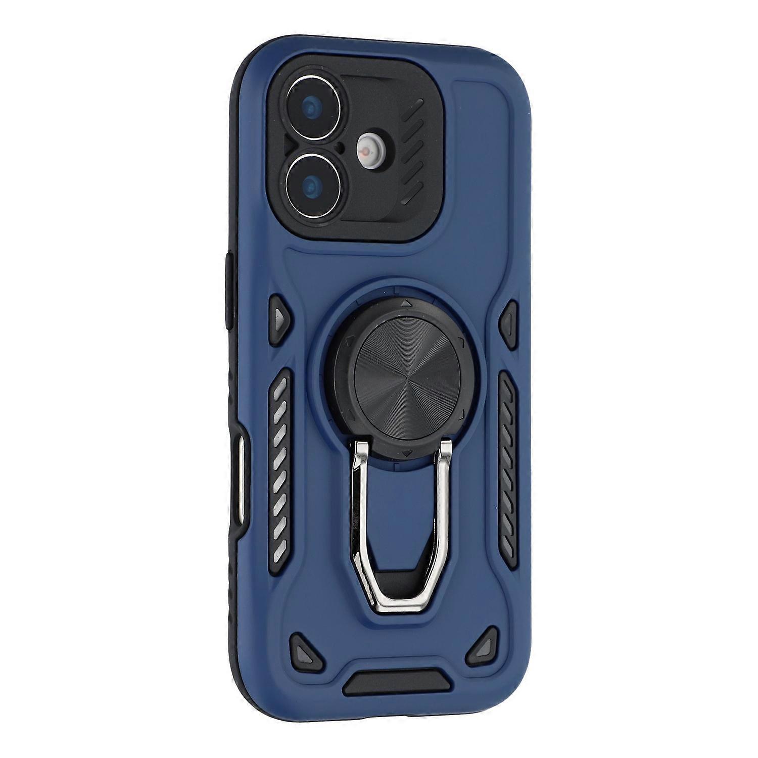 For iPhone 16 Plus Case with Kickstand Shockproof TPU+PC Phone Back Cover - Navy Blue