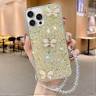لجهاز iPhone 11 Starry Sequin Jade Butterfly Epoxy TPU جراب هاتف مع حزام