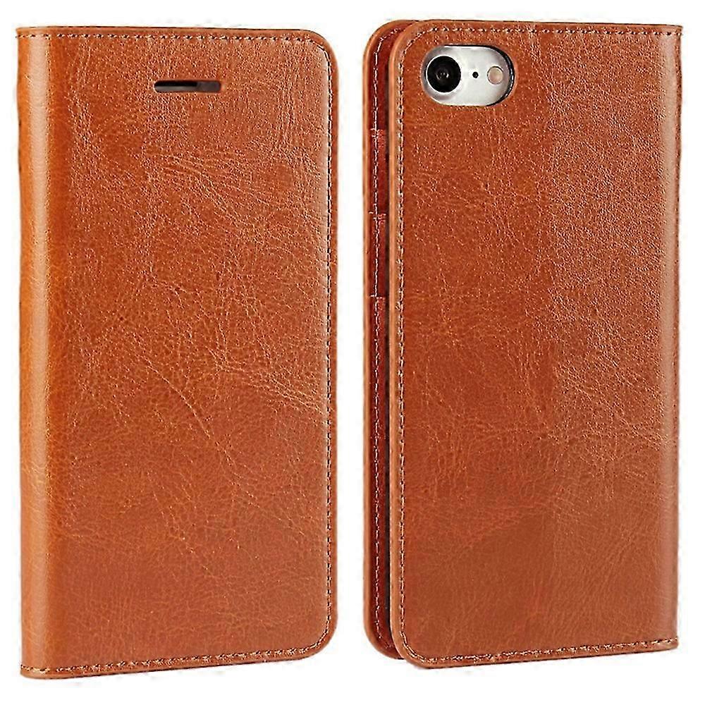 For Iphone Se (2020)/se (2022)/8/7 4.7 Inch Oiled-edgingcrazy Horse Genuine Leather Attached Hard Pc Inner Case Wallet Stand Flip Phone Cover