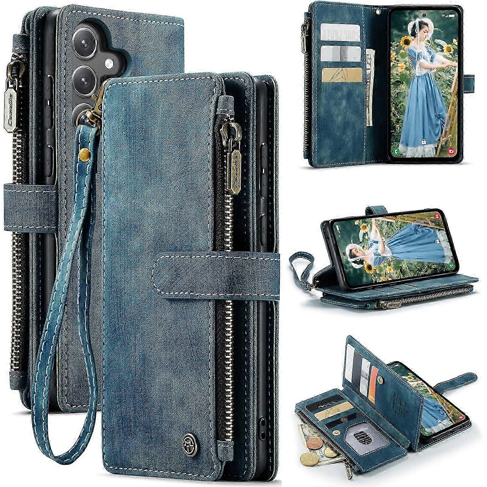 for Samsung Galaxy S24 Ultra Wallet Case with Card Holder, Sturdy PU Leather Case for Women Men Magnetic Flip Zipper Wristlet Strap Kickstand Phone Ca