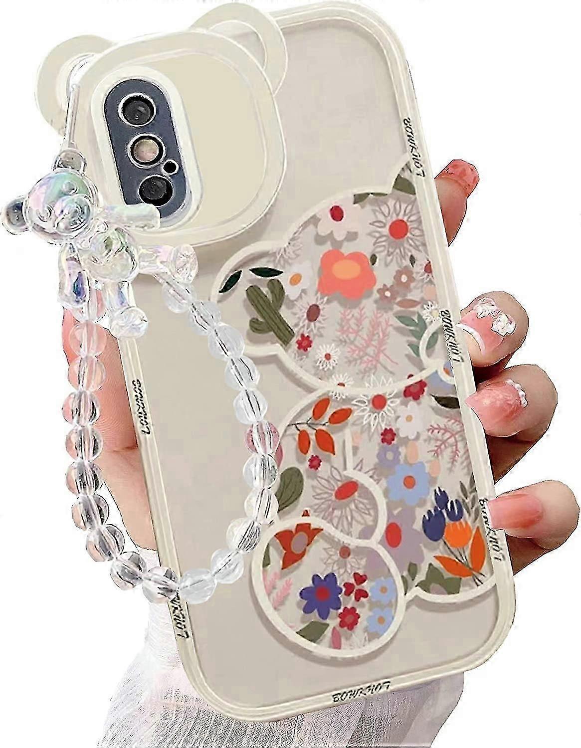 For IPhone XR Bear Phone Case,Cute Flower Bear Camera Protector Transparent Phone Case With Cute Strap Bracelet Chain Girl Girl Phone Case for iPhone