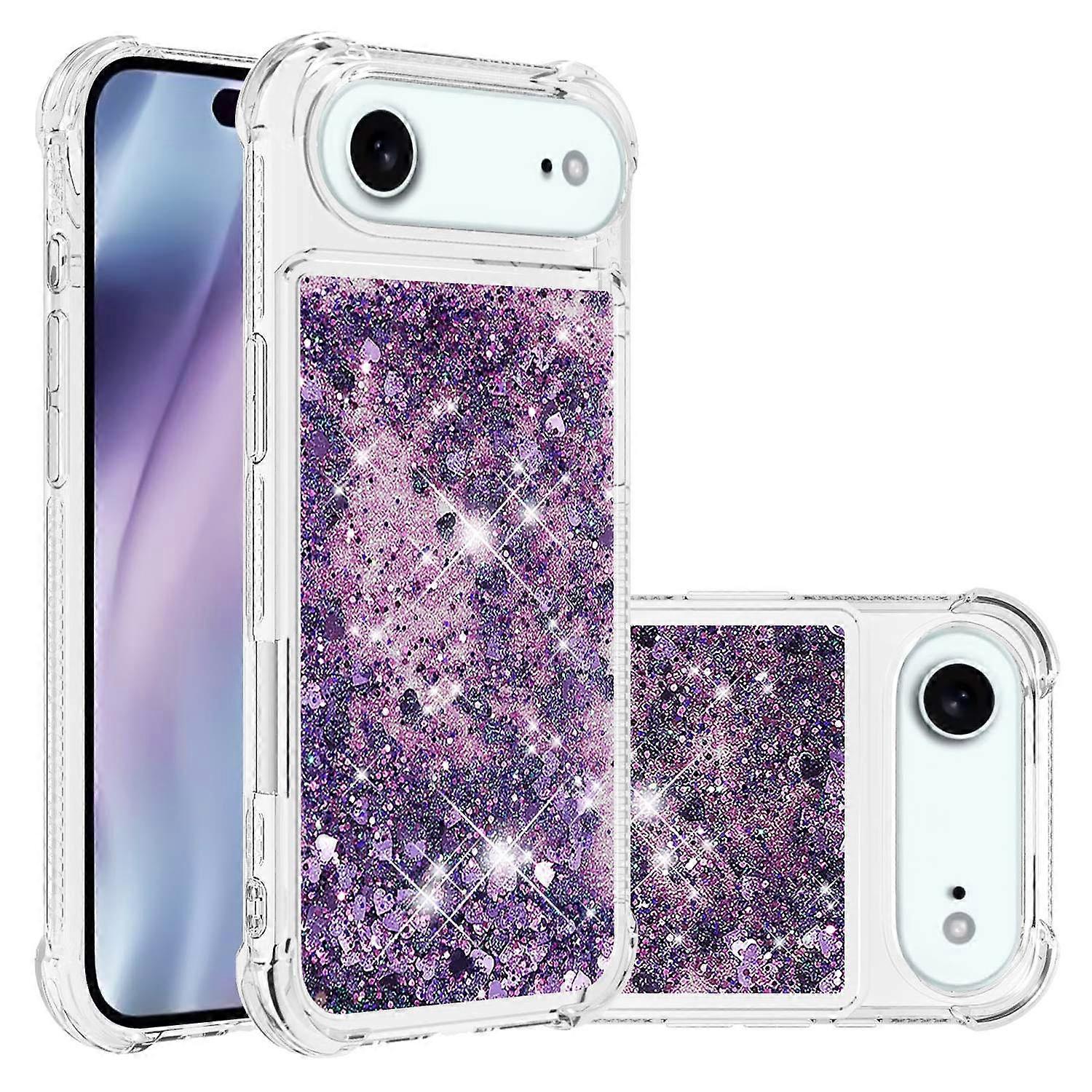 For iPhone 17 Air TPU Case Glitter Quicksand Shockproof Phone Back Cover - Dark Purple/Hearts