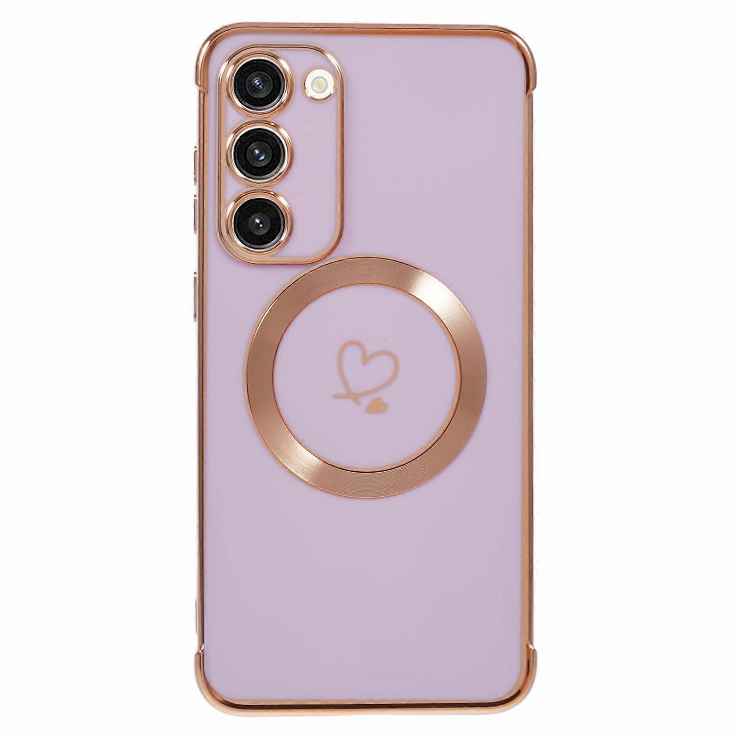 For Samsung Galaxy S23 Case Compatible with MagSafe Electroplated TPU Phone Cover Hollow Love Hearts