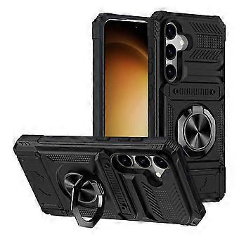 for Samsung Galaxy S24 Ultra Case with Card Holder -Store 2 Cards, +360 Magnetic Rotated Ring Kickstand, Dual Layer Heavy Duty Shockproof Wallet Case