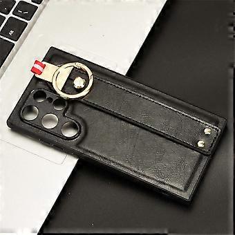 for Samsung Galaxy S24 Ultra Case with Kickstand, Wrist Strap, Finger Loop and Lanyard, All-Inclusive Lens PU Leather Protective Case
