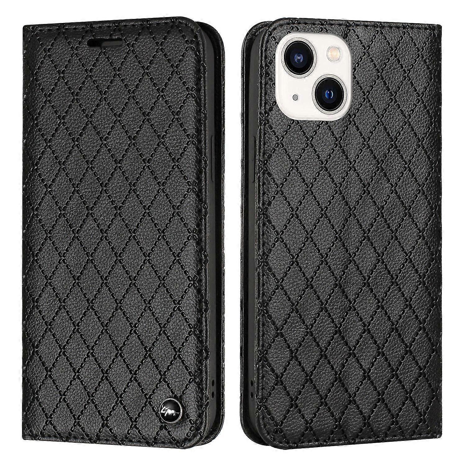 For iphone 15 Case, PU Leather Flip Cover Magnetic Closure Wallet Card Slots Stand Case Lattice Design