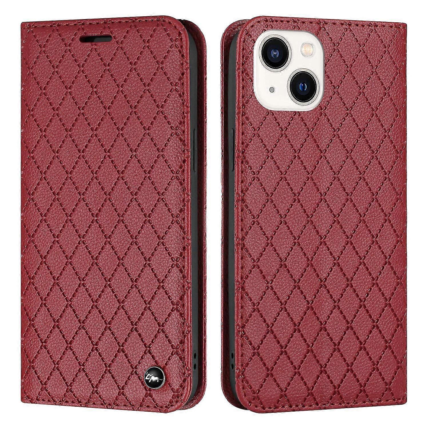 For iphone 15 Case, PU Leather Flip Cover Magnetic Closure Wallet Card Slots Stand Case Lattice Design