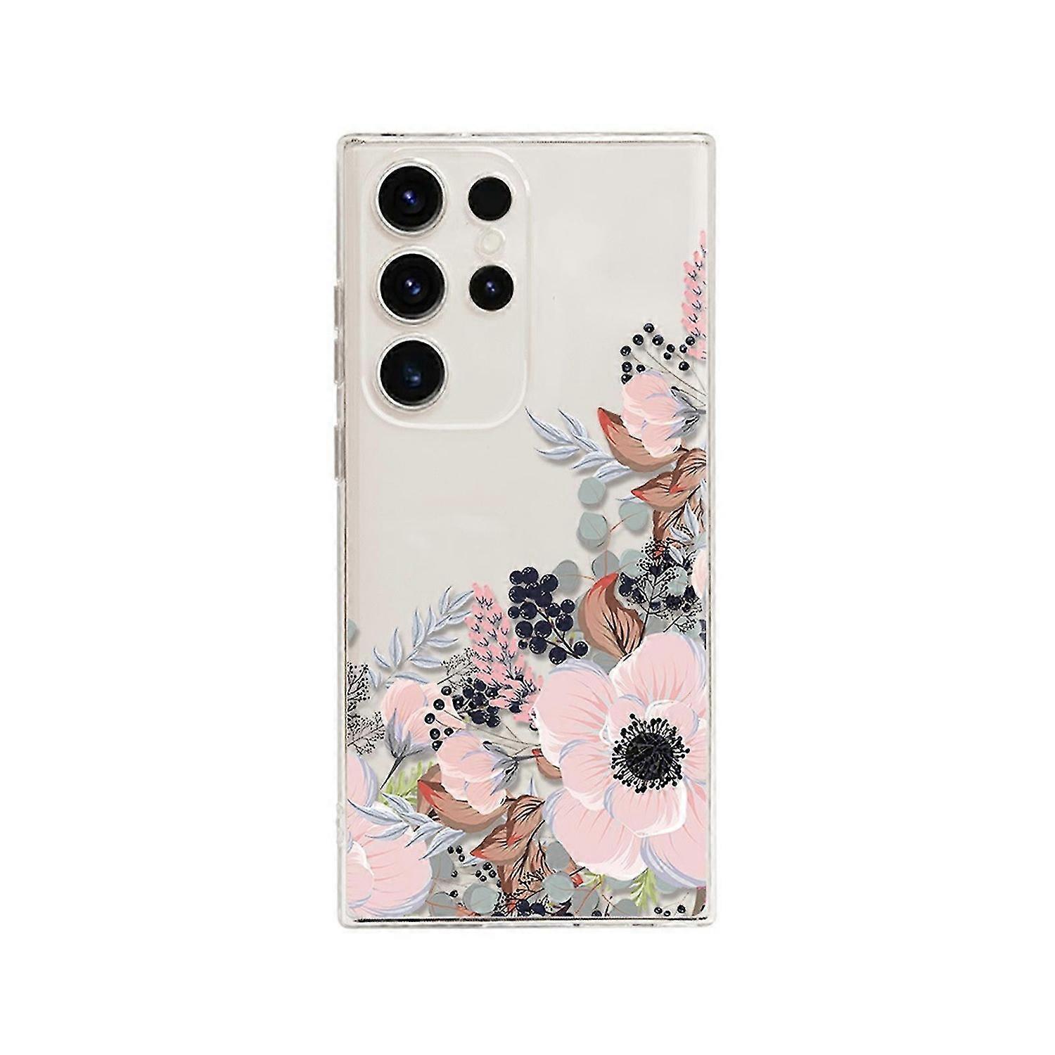 For Samsung Galaxy S24 Case, Cute Floral Bird Design Flower Animal Style Transparent Soft TPU Protec