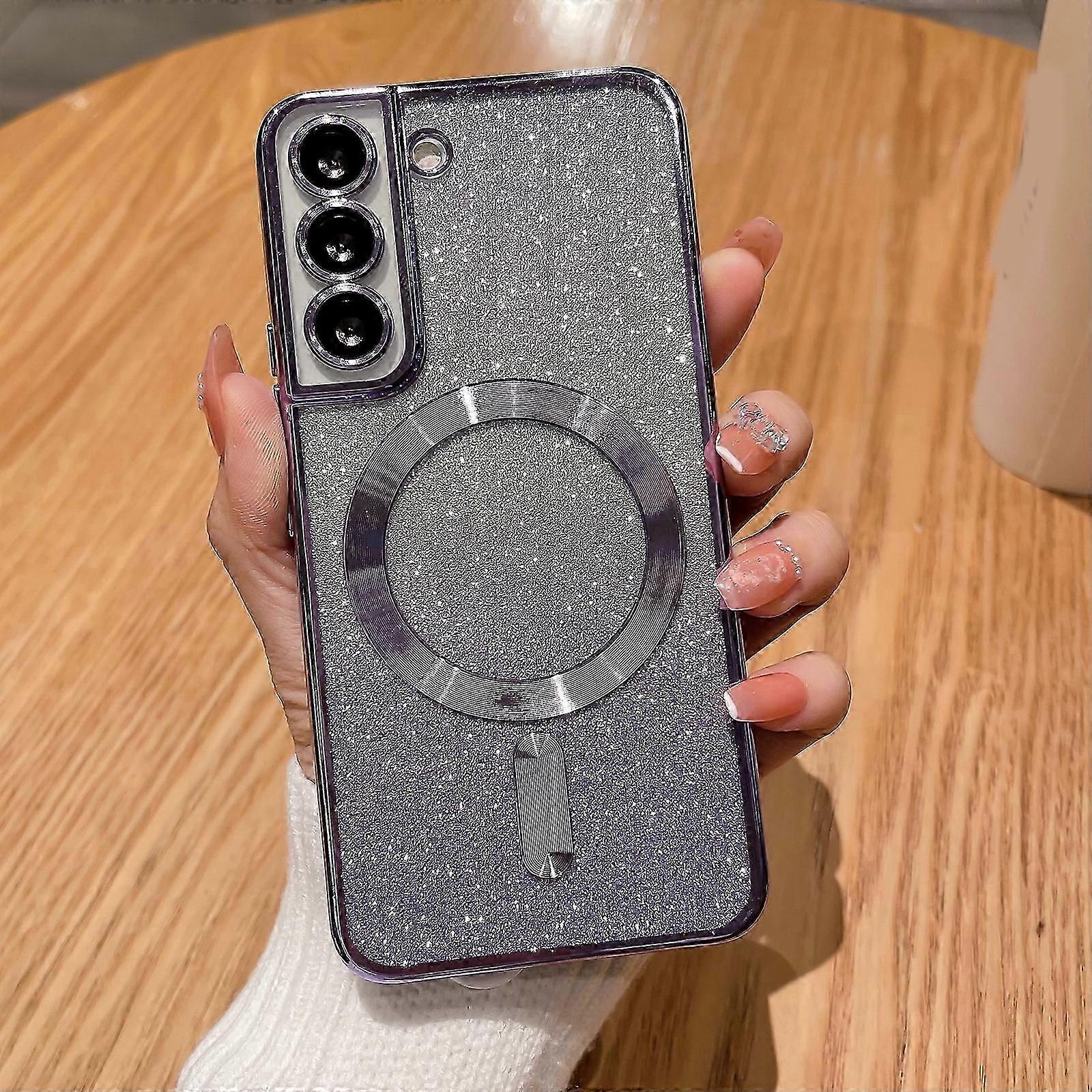 for Samsung Galaxy S24 Case Magnetic,for Women Girl Soft Luxury Plating Bling Gradient Glitter Cute Compatible with MagSafe Cover