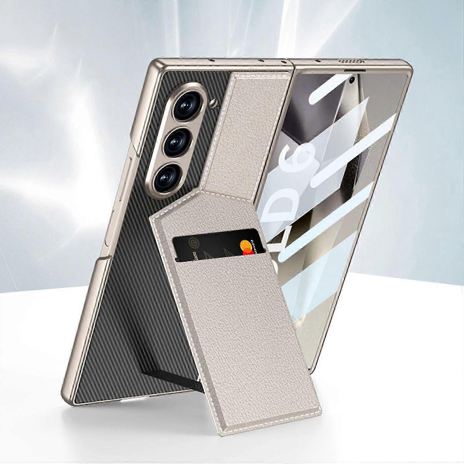 For Sansung Galaxy Z Fold 6 Leather Case with Card Holder, Flip Holster with HD Screen Film and Atta