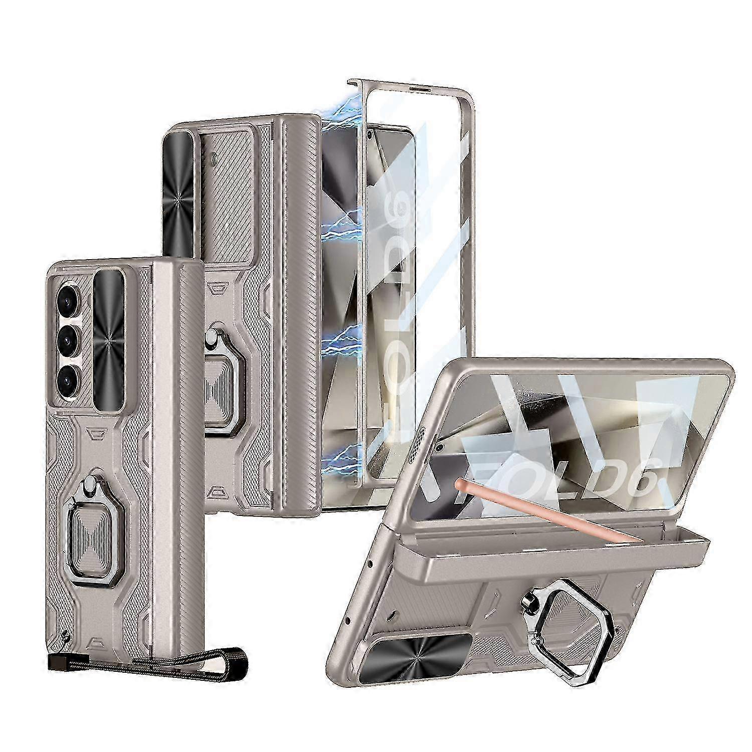 For Samsung Galaxy Z Fold 6 Armor Case - Slim PC Cover with S Pen Holder, Screen Protector, Slide Camera Cover & Ring Stand