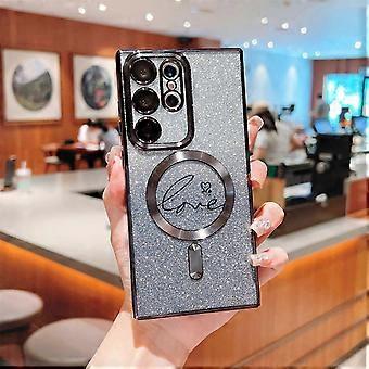 for Samsung Galaxy S24 Ultra Case Magnetic, for Women Girl Soft Cute Luxury Love Heart Plating Bling Glitter Phone Case