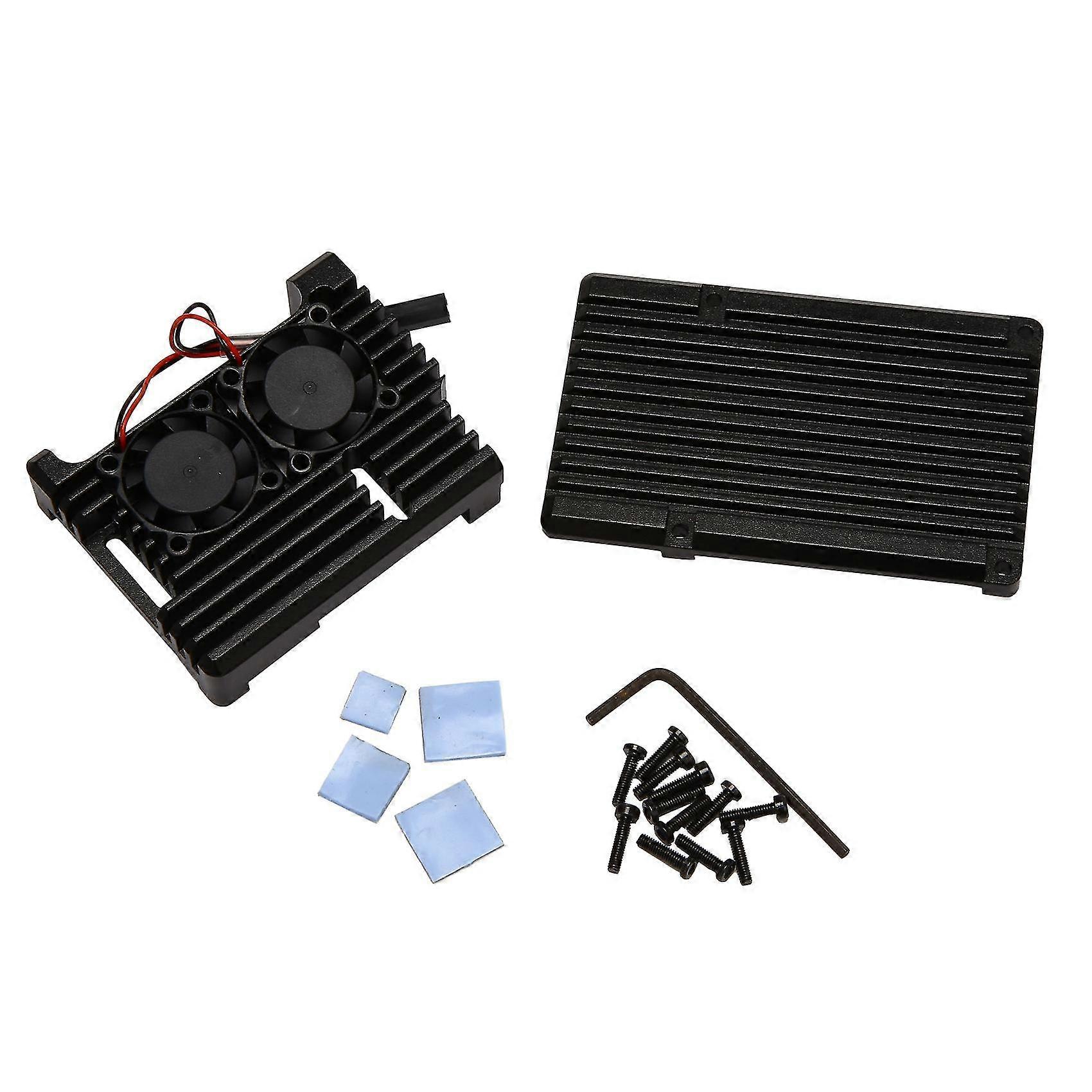 For Raspberry Pi 3 Aluminum Case With Dual Cooling Fan Metal Black
