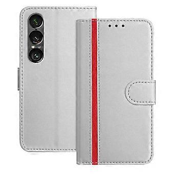 For Sony Xperia 1 VII Phone Cases Wallet Stand Color Splicing Leather Cover with Magnetic Clasp Silver