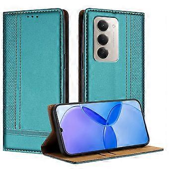 For Xiaomi Redmi 15 4G (EU) (171mm) / Xiaomi Redmi 15 5G (EU) (171mm) Case L-Shaped Grid Pattern Leather Stand Phone Cover with Card Slots Green