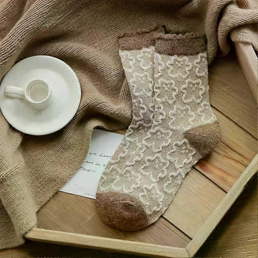 Cute Bear Socks Women High Wool Keep Warm Brown Winter Sock Fuffy Funny Lovely Kawaii Cartoon Christmas Gift Thermal Size 35-40