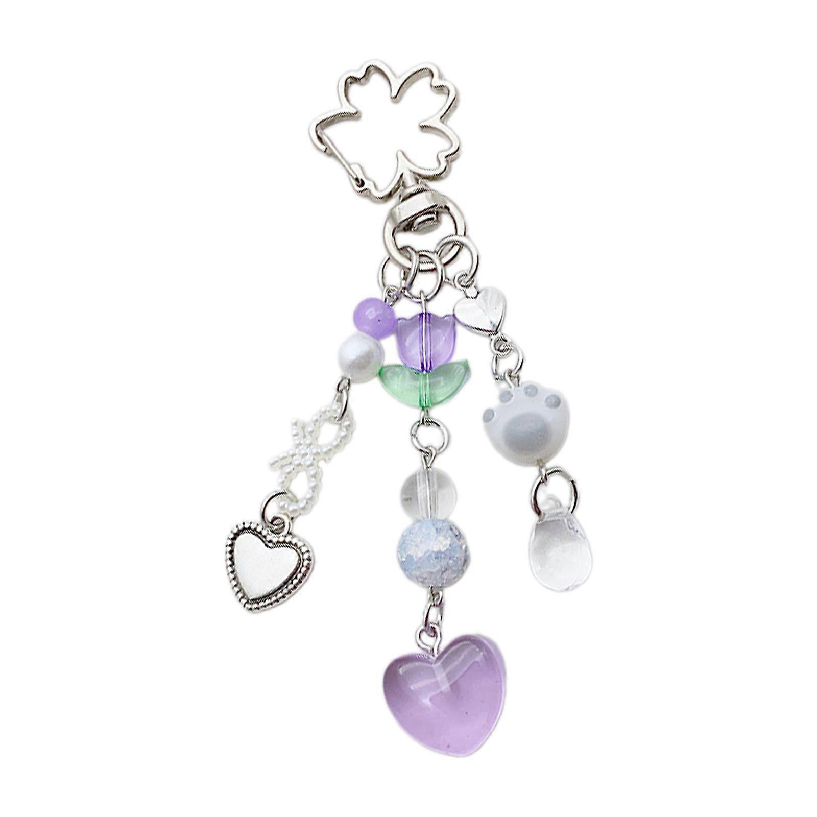 Cute Cat Claw Heart Flower Keychain Pendant Lovely Hangings Decorations Keyring Charm for Purse Bag Backpack Handbag Purple