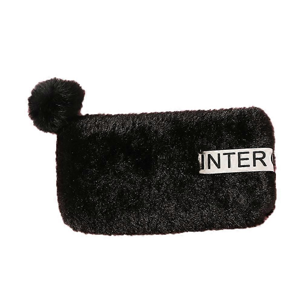 Cute Plush Pen Organizer Pencil Bag Case Pencil Pouch School Stationery(Black)