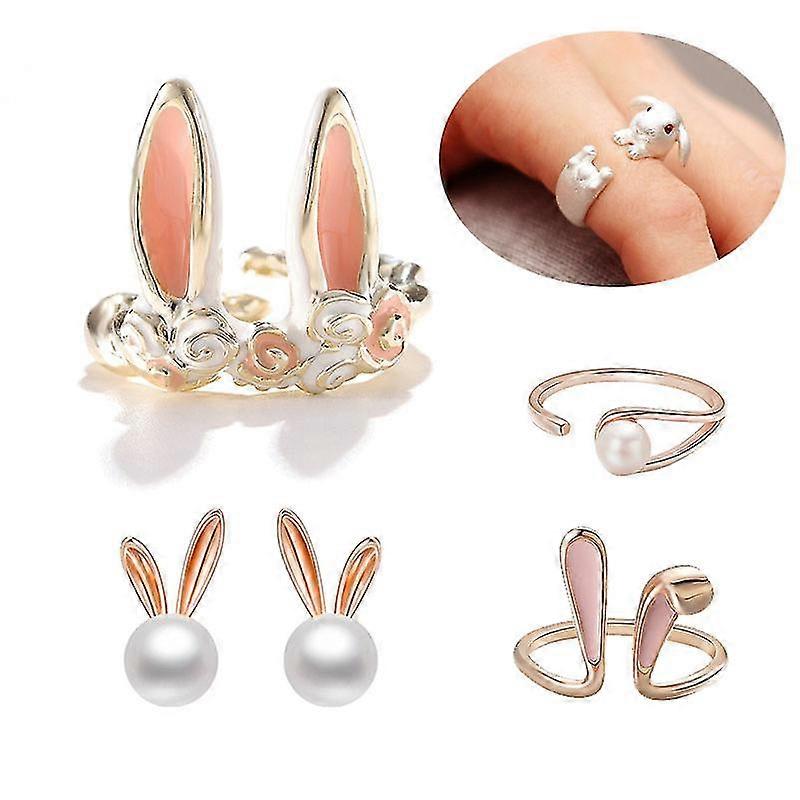 Cute Rabbit Ear Rings For Women Girl Open Adjustable Animal Rings Sweet Pink Enamel Bunny Finger Accessories Easter Jewelry Gift