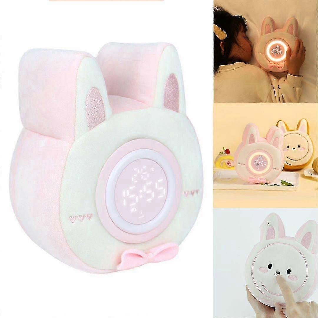Cute Rabbit Night Light LED Alarm Clock USB Charger for Bedrooms, Bedside, Desk Dimming Timing Lamp for Kids