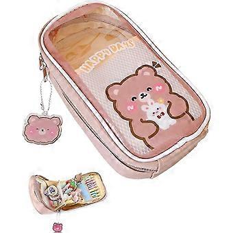 Cute Brown Bear Pencil Case, Aesthetic Pencil Pouch, Kawaii School Supplies Makeup Bag For Girl Women Adult