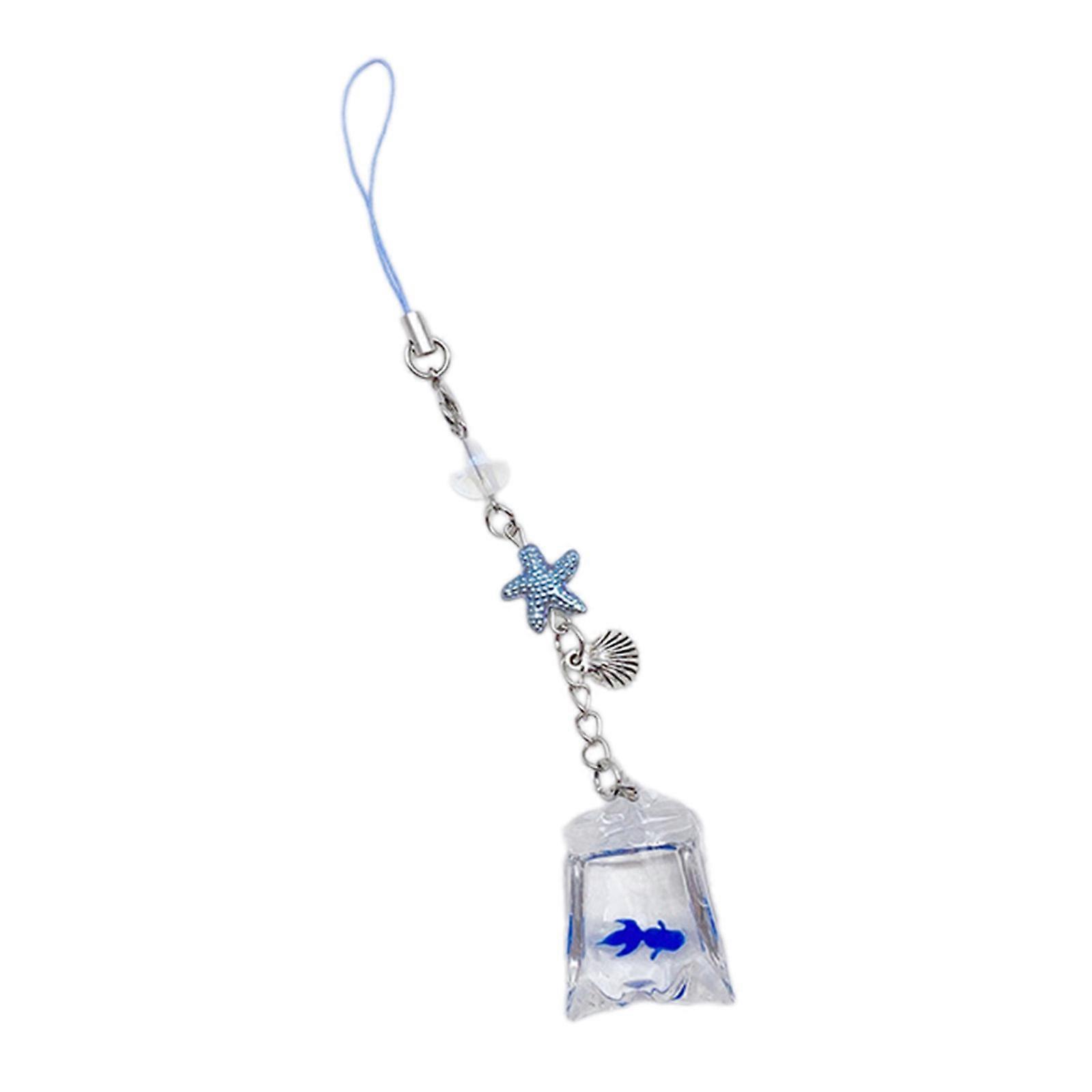 Cute Bag Small Fish Bead Charm Pendant Chain Phone Strap Pocket Keychain Strap Hangings Decoration for Key Bag Purse Blue