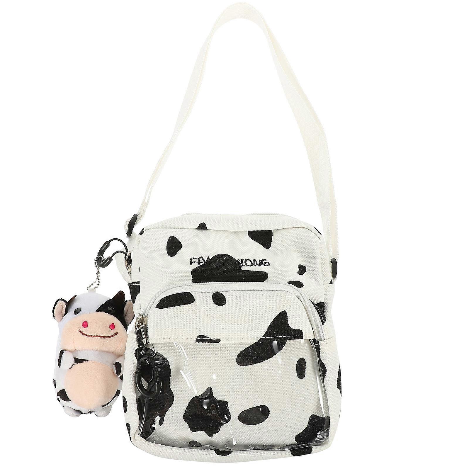 It is made from material for long time and durable use. Perfect for shopping, traveling, walking, working, going out, day trip, and daily use. Moderate capacity to meet daily storage needs. Lovely cow pendant design makes it more attractive to people. Features - Color: As shown. - Material: Polyester, canvas. - Size: 18.00X15.00X5.00cm/7.07X5.89X1.97inch. -Note: Accessory color is . - Adjustable shoulder strap design, you can adjust the shoulder strap according to your needs. - You can send it to your families and friends as a present, they will be happy. - Perfect crossbody bag for storing and organizing your mobile phone, key, purse, coin and much more. - Suitable for shopping, working, travelling, walking, going out and other occasions. - Creative cow pendant design ensures its popularity among girls and ladies. Package list: 1