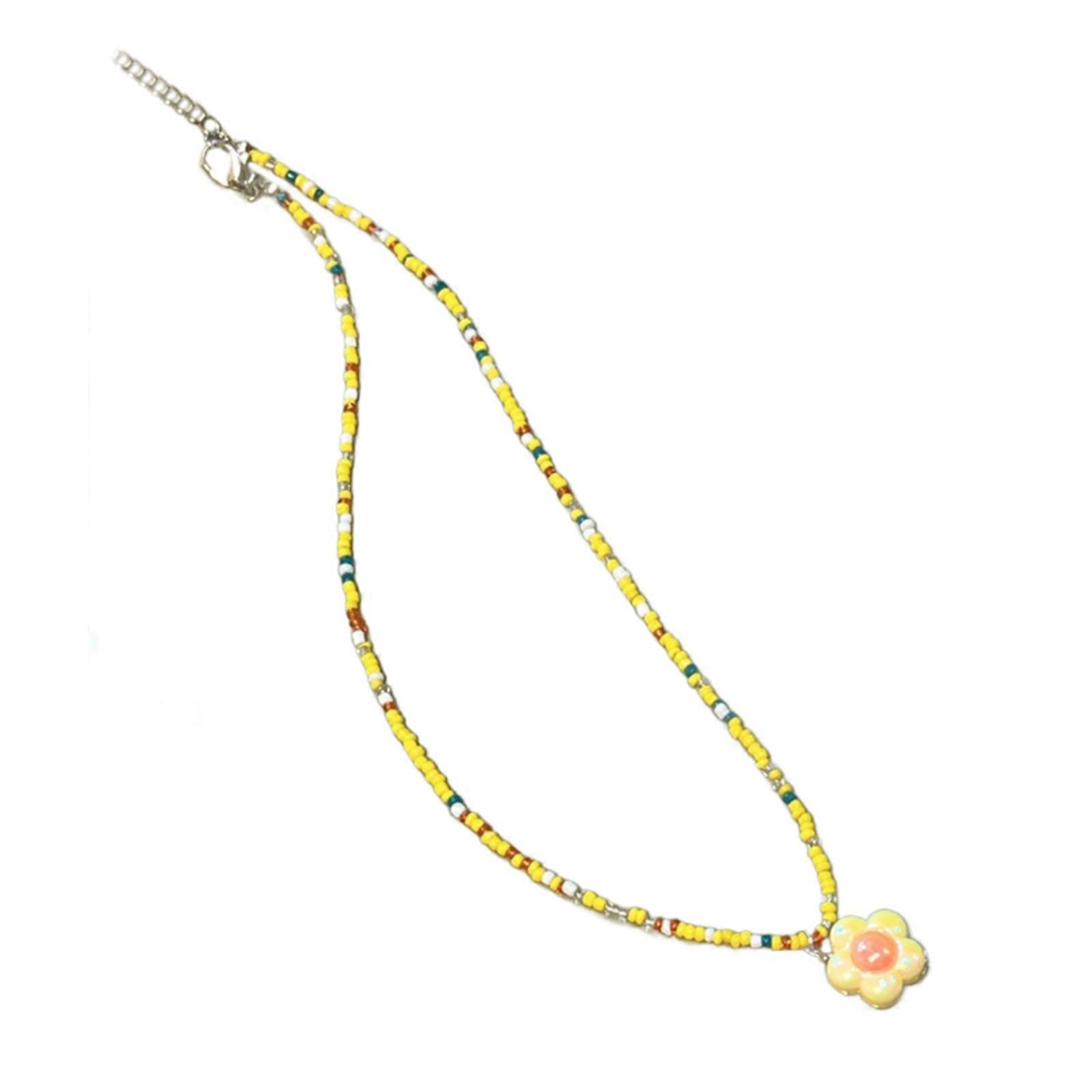 Cute Flower Pendant Necklace Elegant Collar Choker Handmade Colorful Beaded Charm Necklace Neck Chain Fashion Jewelry