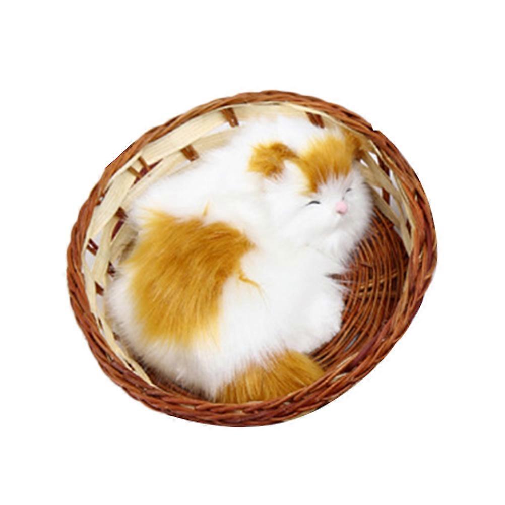 Cute Animal Desktop Ornaments Simulation Basket Cat Plush Toy Funny Tabletop Decoration for Home Office 10.00X10.00X5.00CM