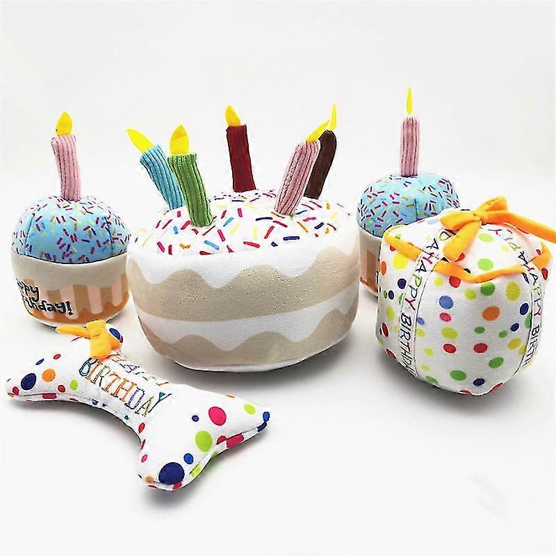 Cute Birthday Cake Plush Squeaky Toys Soft Cupcake Stuffed Pets Interactive Bite Resistant Toy For Small Large Dogs Accessories